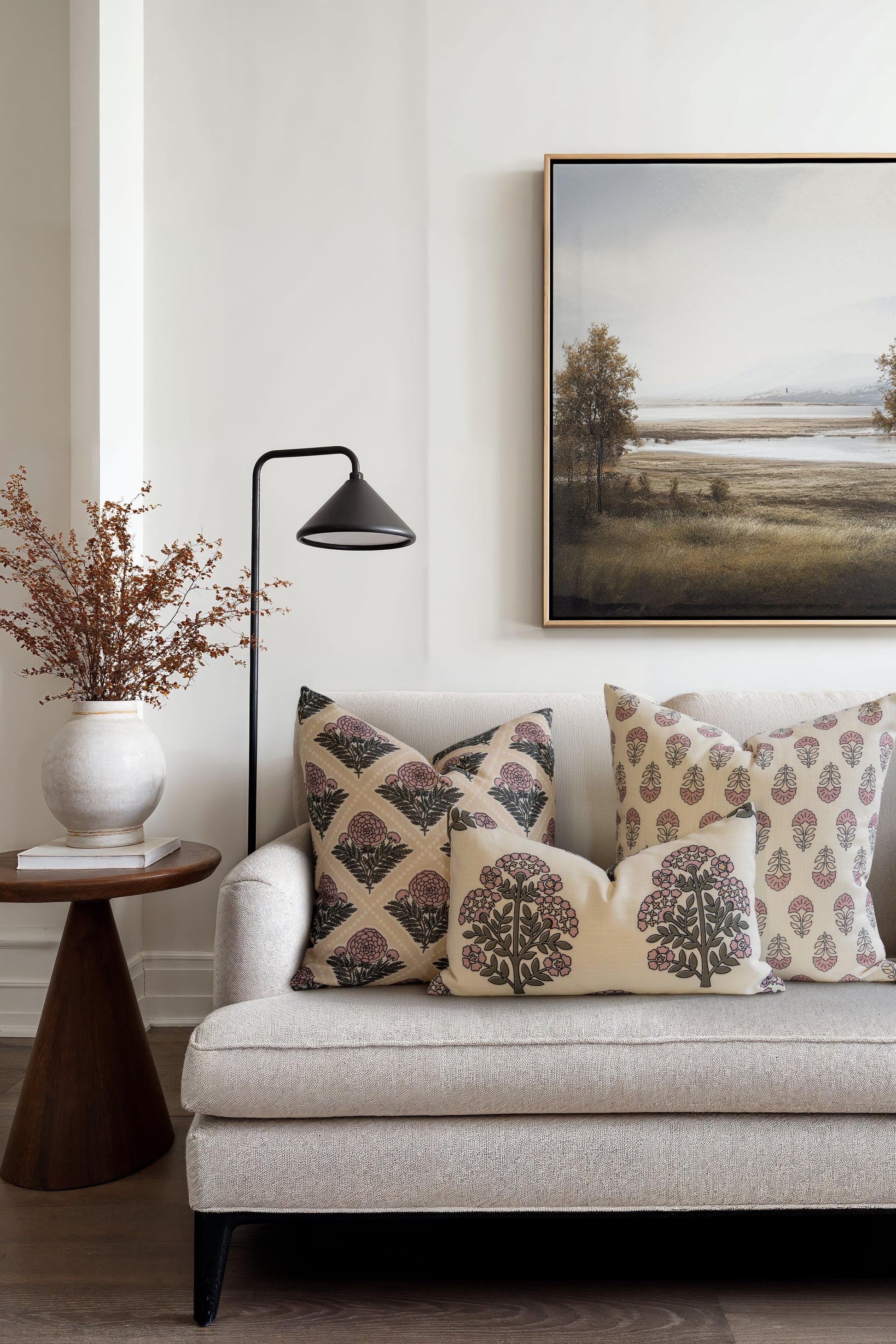 Made from upholstery-weight linen blend fabric, blending indoor comfort with outdoor durability. Printed designs may fade in strong sunlight, so keep pillow covers shaded or stored when not in use to maintain vibrancy.