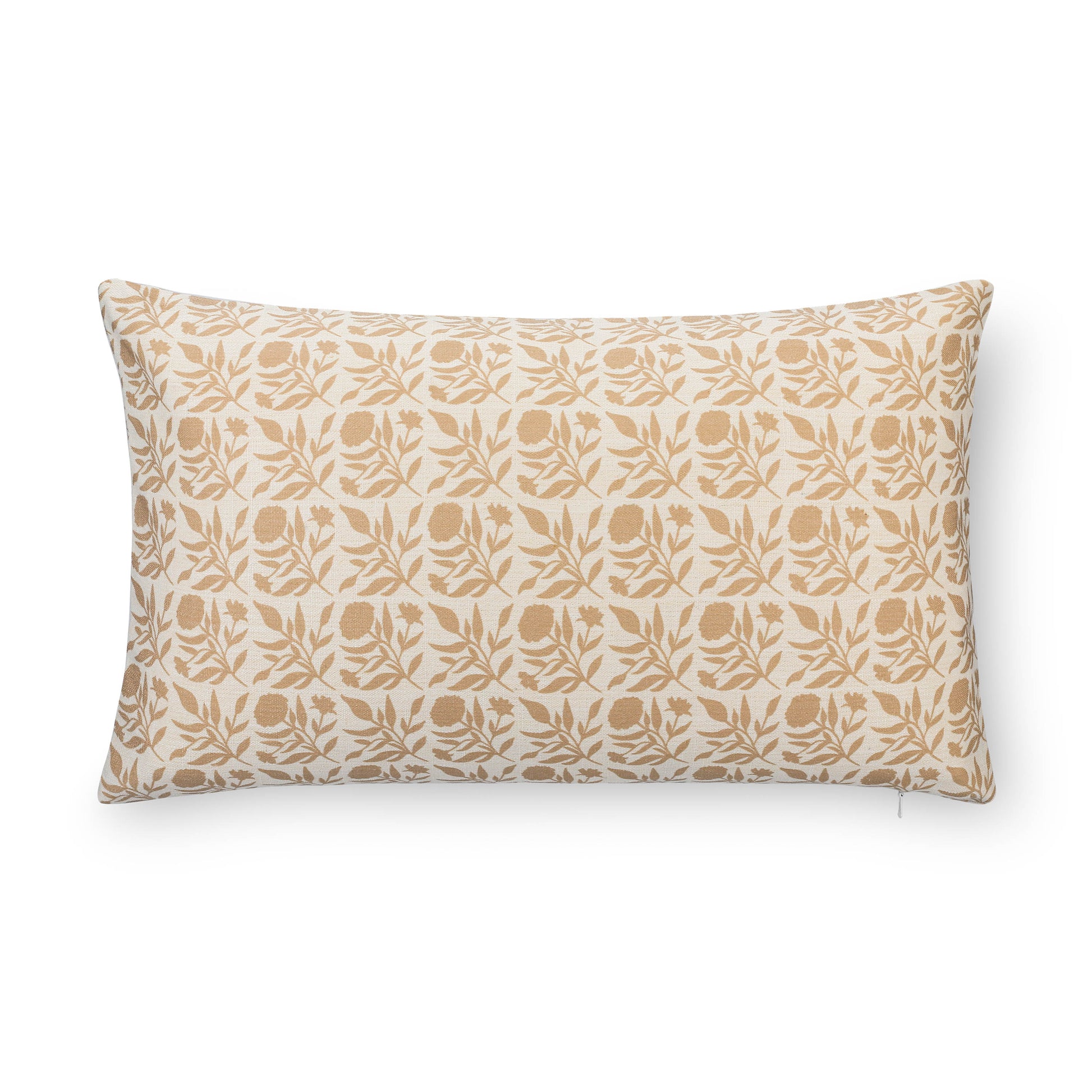 Roselith Indoor Outdoor Lumbar Pillow Cover, Floral and Leaves Geometric, Earth Tone Ivory Cream Tan, 12"x20"
