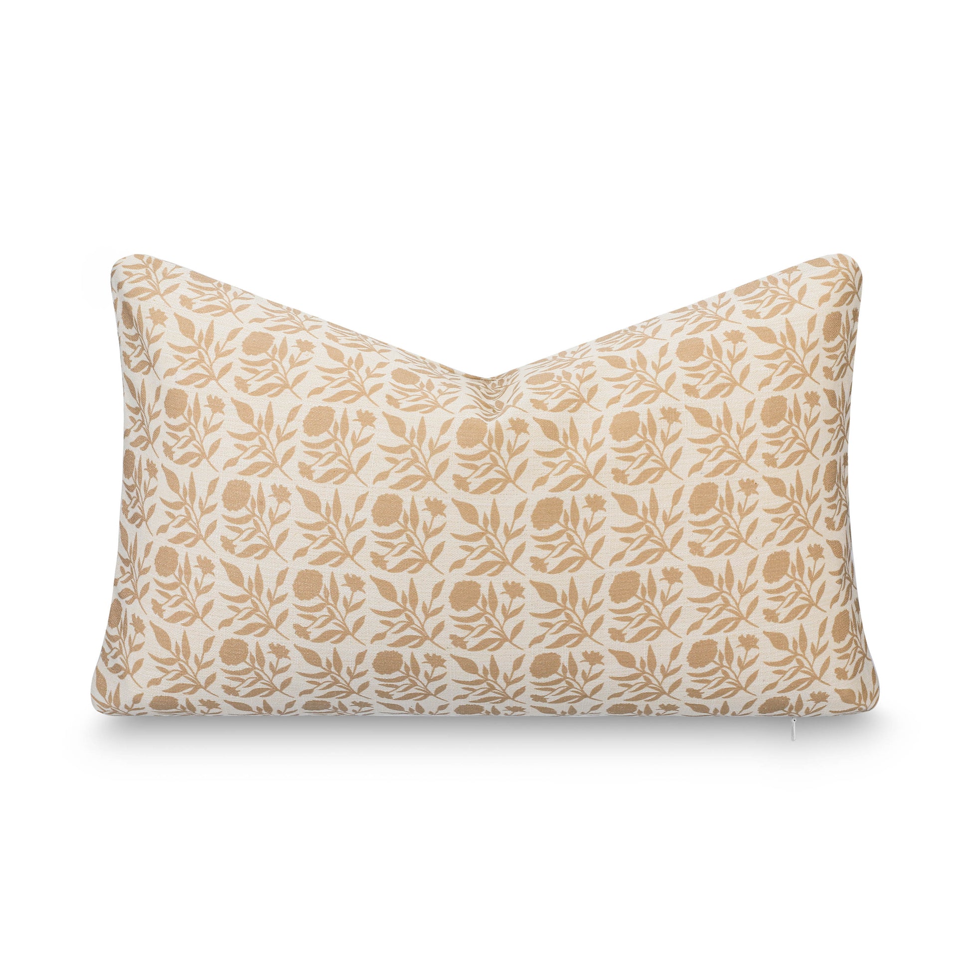 Showcasing ivory cream tan floral and leaves geometric patterns on an ivory cream base, this indoor outdoor tan decorative lumbar pillow cover exudes relaxed charm with subtle warmth. Its reversible side adds balanced style and gentle worldly-inspired touches for airy, layered spaces.