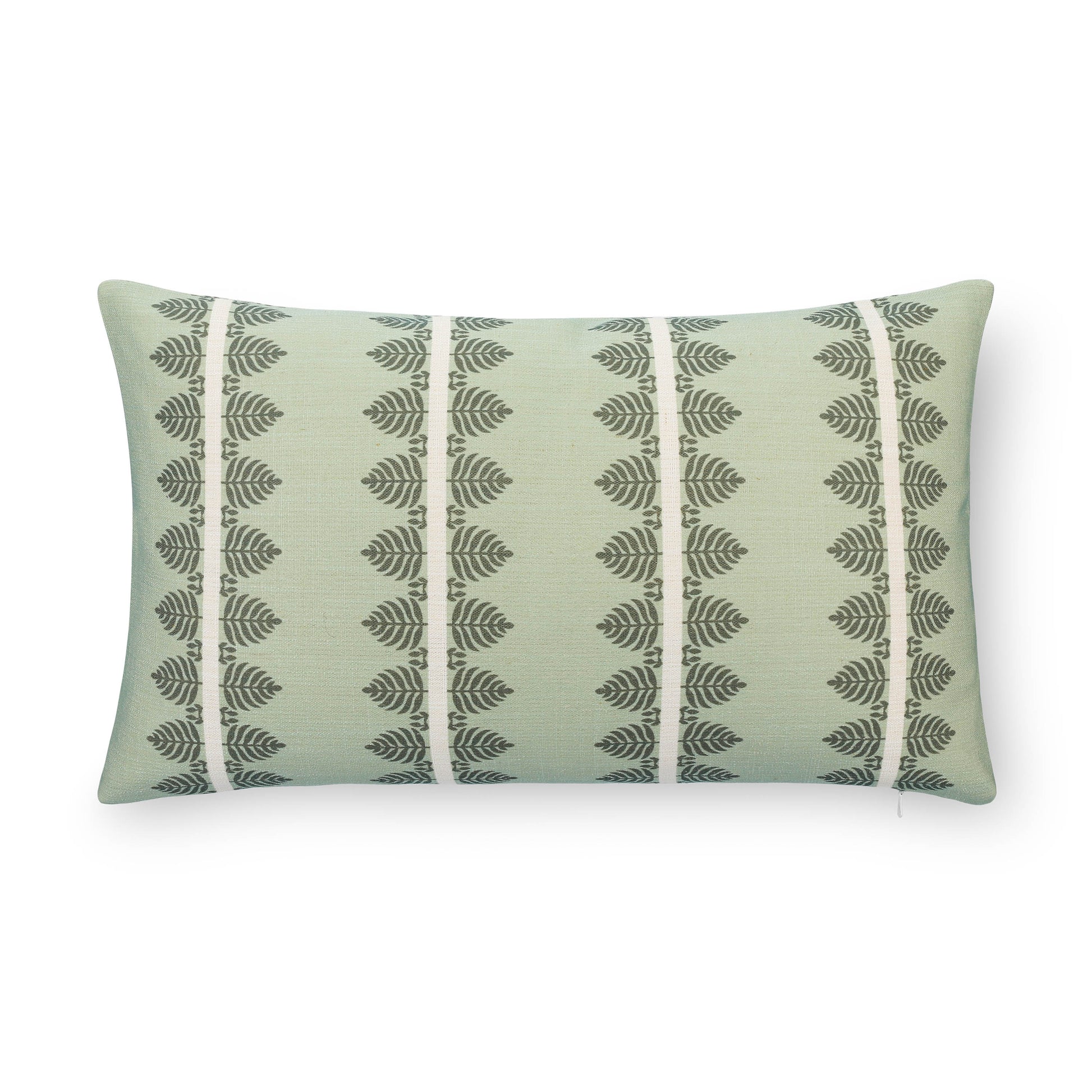 Vernaye Indoor Outdoor Lumbar Pillow Cover, Leaves Stripes, Olive Light Green, 12"x20"